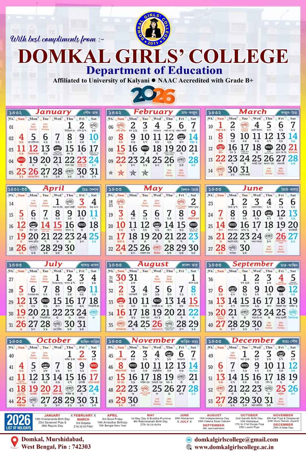 The Department of Education at Domkal Girls' College in Domkal, Murshidabad, commenced its academic journey on July 7, 2011, with the affiliation of the B.A. (General) program under the University of Kalyani. Initially, Education was offered as a general subject, but the introduction of Education as an honors subject in 2014 marked a significant step forward. With an initial enrollment of 30 students, the department experienced a steady increase in student numbers over the years. Since its inception, the department has maintained a rich and illustrious history, marked by continuous growth and academic excellence.